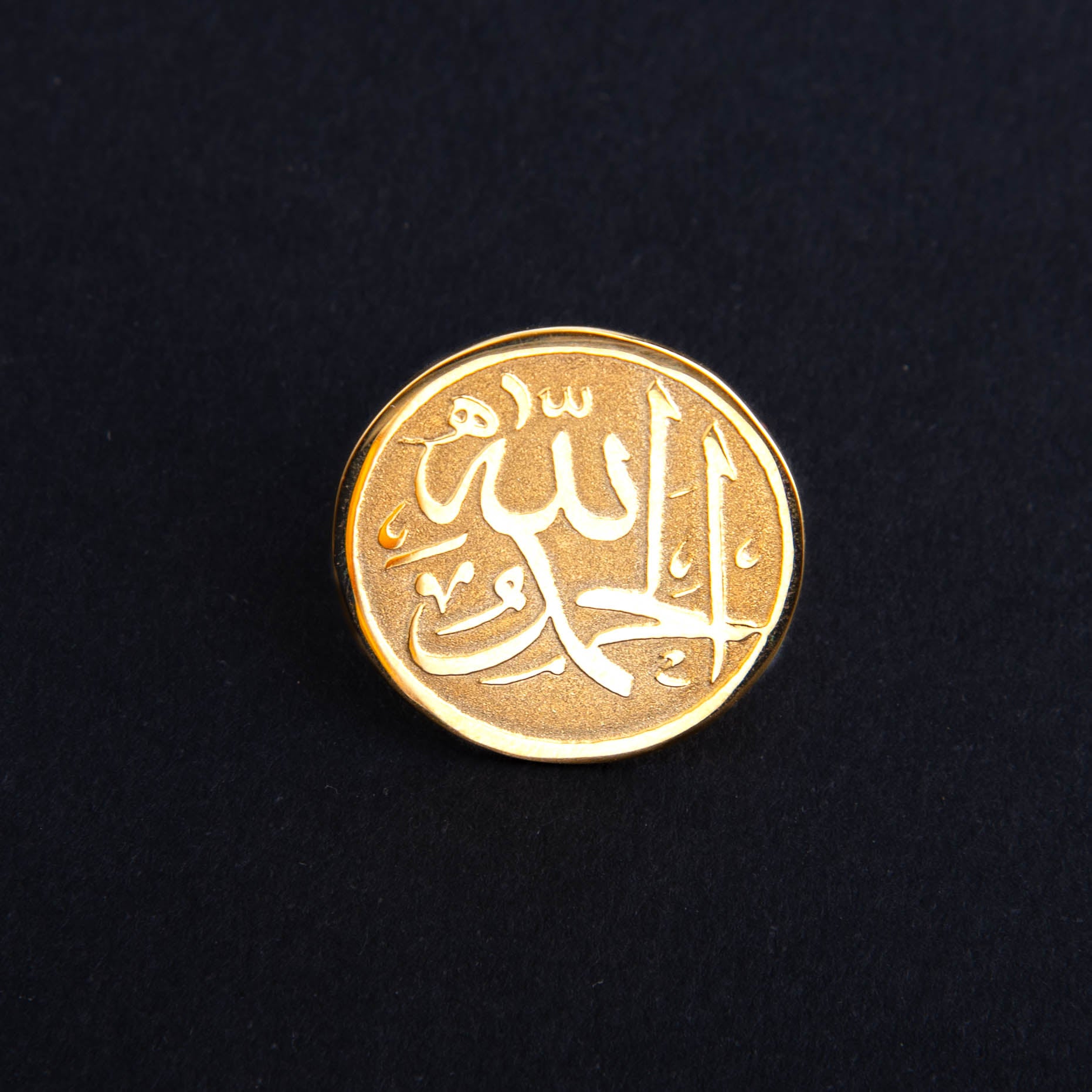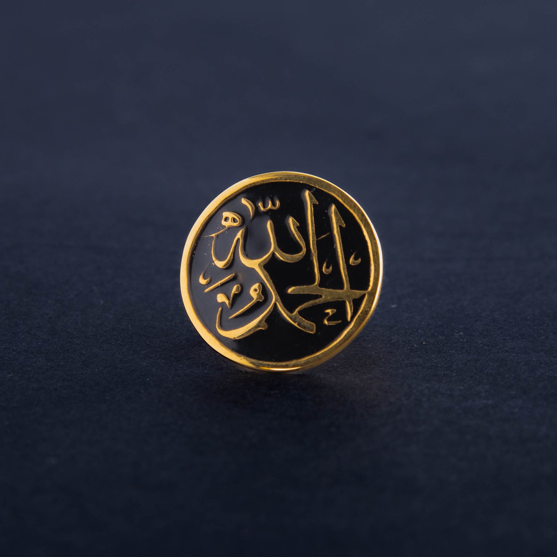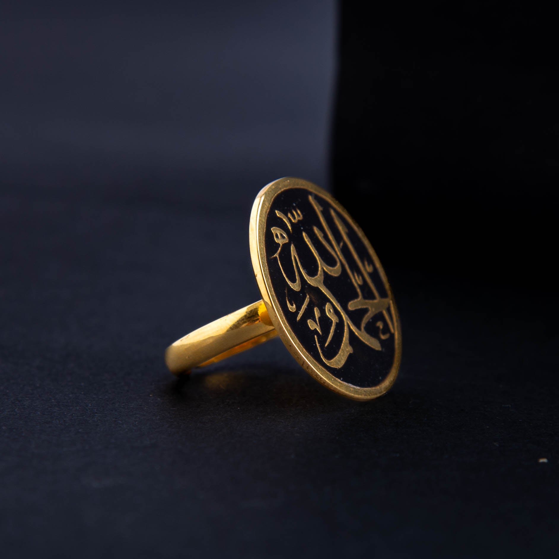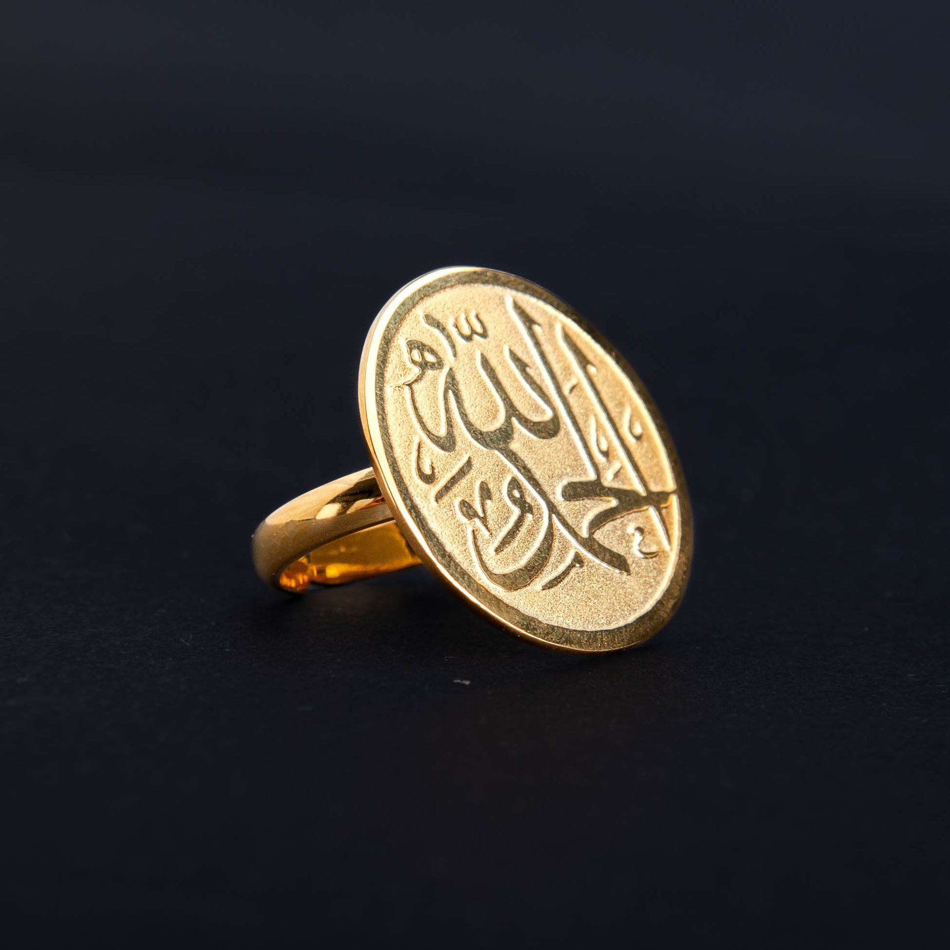 This 24k double gold-plated ring is a sophisticated piece of jewelry that combines elegance and deep meaning. It features a dual-band design, each band plated with gold for a luxurious and radiant finish. The phrase "Alhamdulillah," meaning "Praise be to God" in Arabic, is intricately engraved across the bands, adding a spiritual touch to the piece.