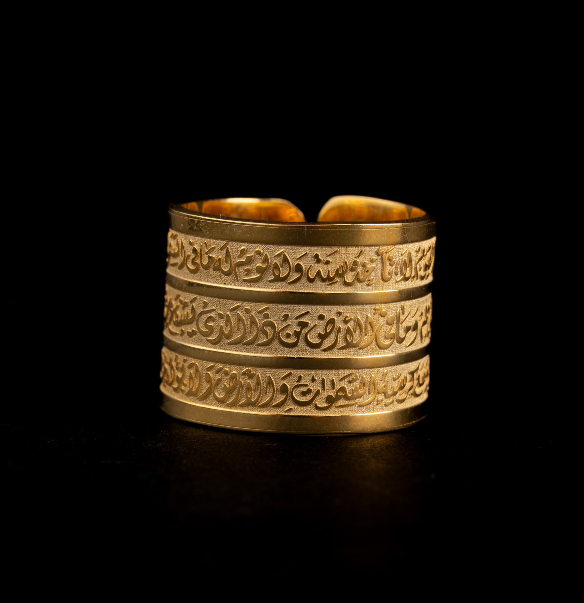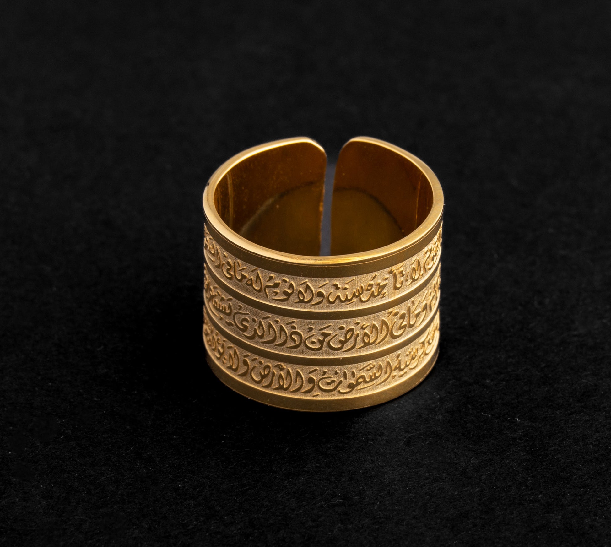 Introducing our exquisite ring adorned with Ayat al-Kursi, also known as The Throne Verse, from the Qur'an. Crafted with meticulous detail, this ring is available in your choice of silver or gold plating.