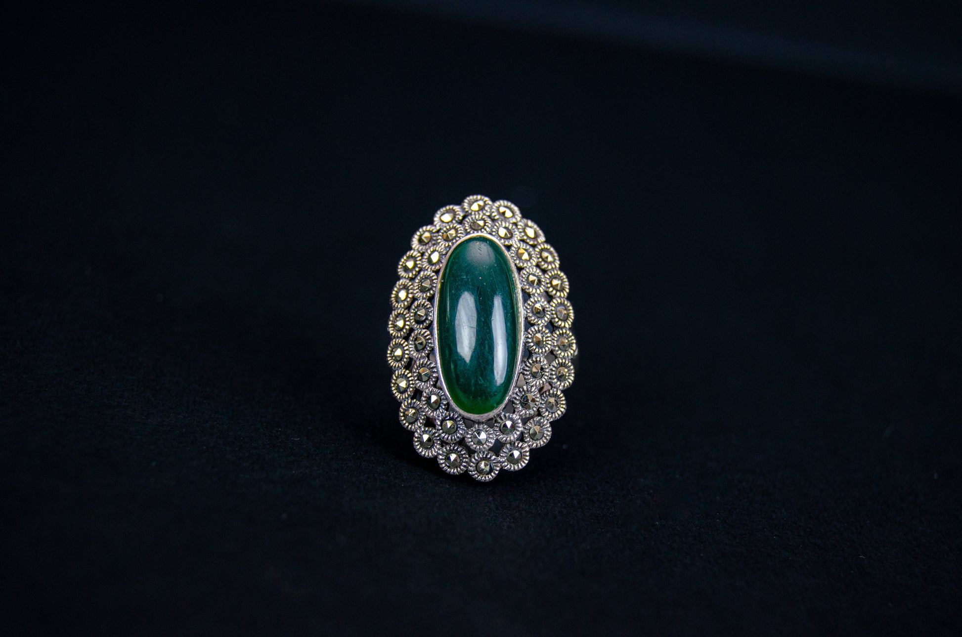 Indulge in sophisticated luxury with our Forest Green Gem Silver ring. Crafted from high quality silver, this exquisite ring features a stunning centerpiece adorned with a rich forest green gem. Elevate your style with this statement piece that exudes elegance and exclusivity.