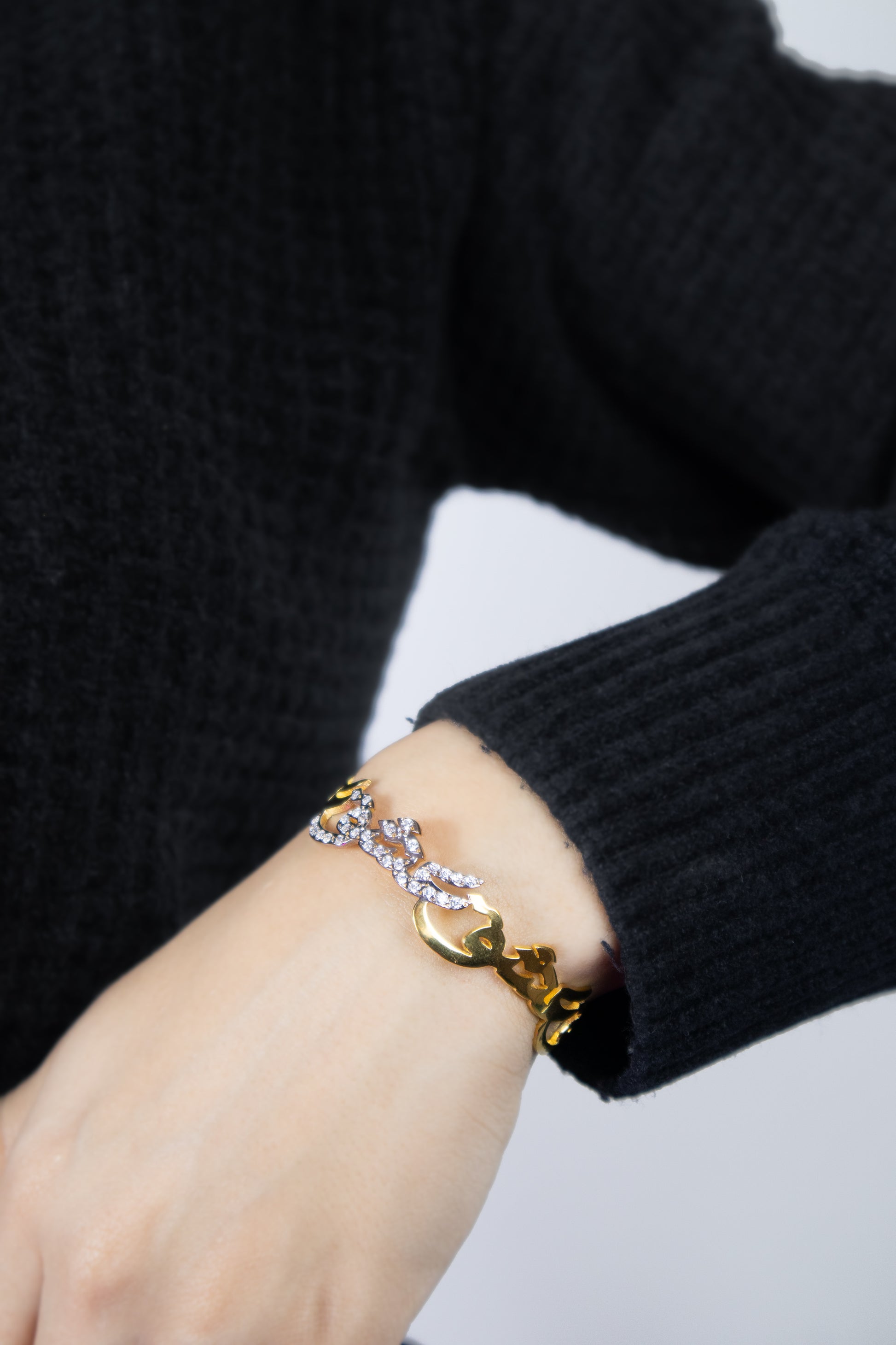Crafted in 24K gold plating, the bracelet captures both beauty and meaning—making it a statement of love, devotion, and elegance.