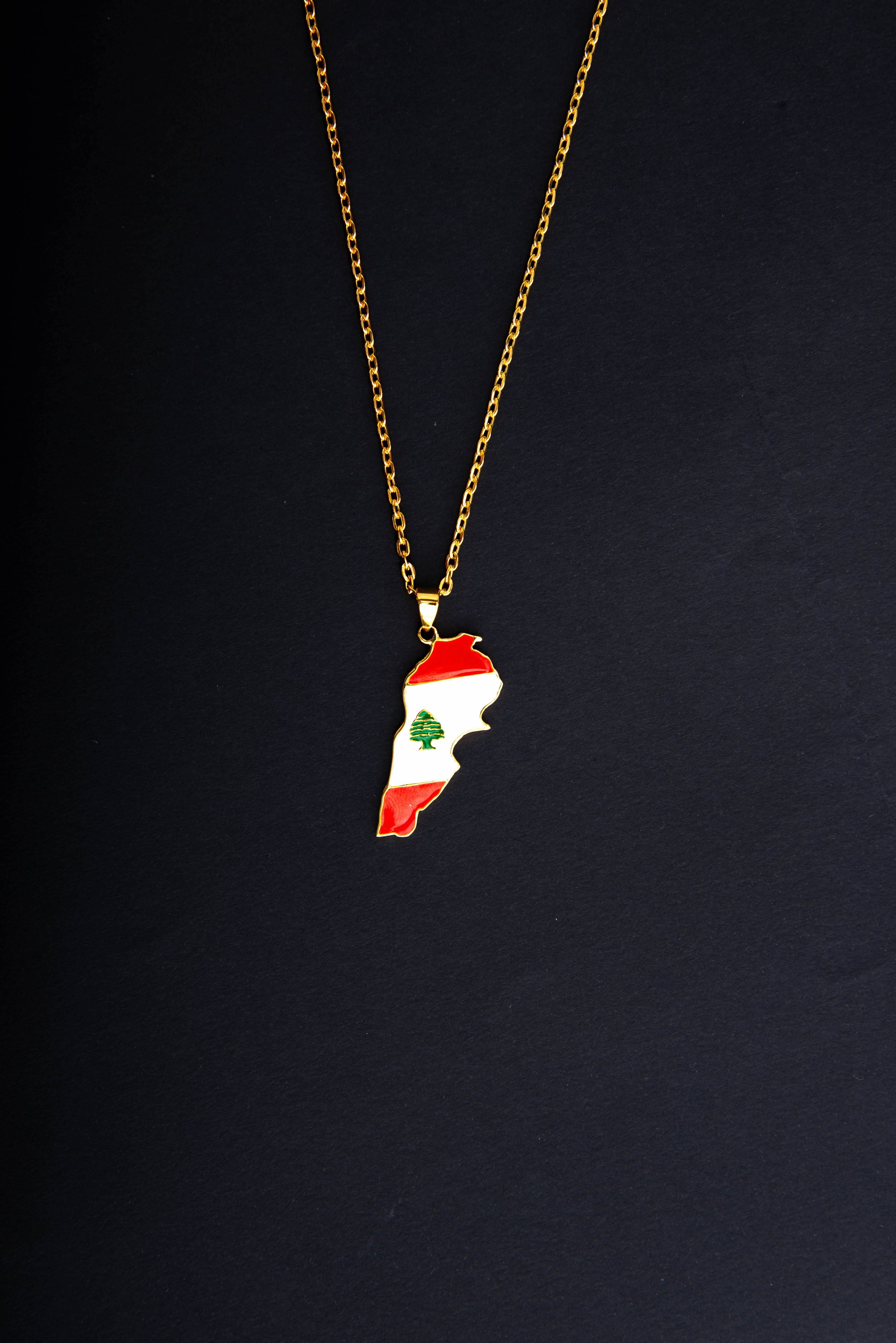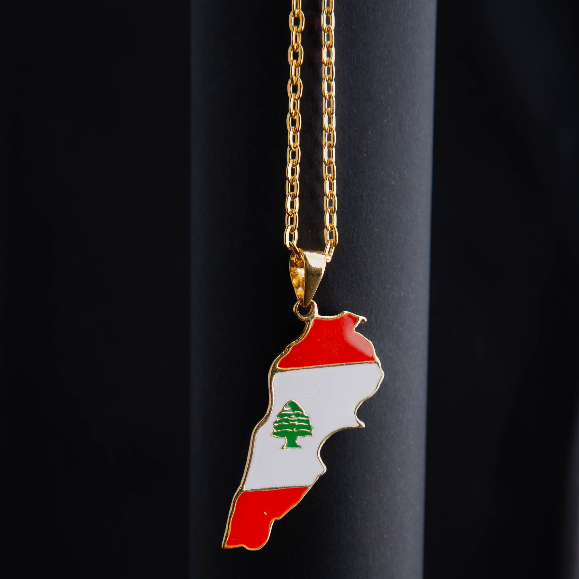 The pendant is expertly crafted and plated with gold, giving it a radiant and luxurious finish that enhances its beauty. The design captures the vibrant colors and elements of the Lebanese flag, highlighting the flag's symbolism of strength, resilience, and unity.