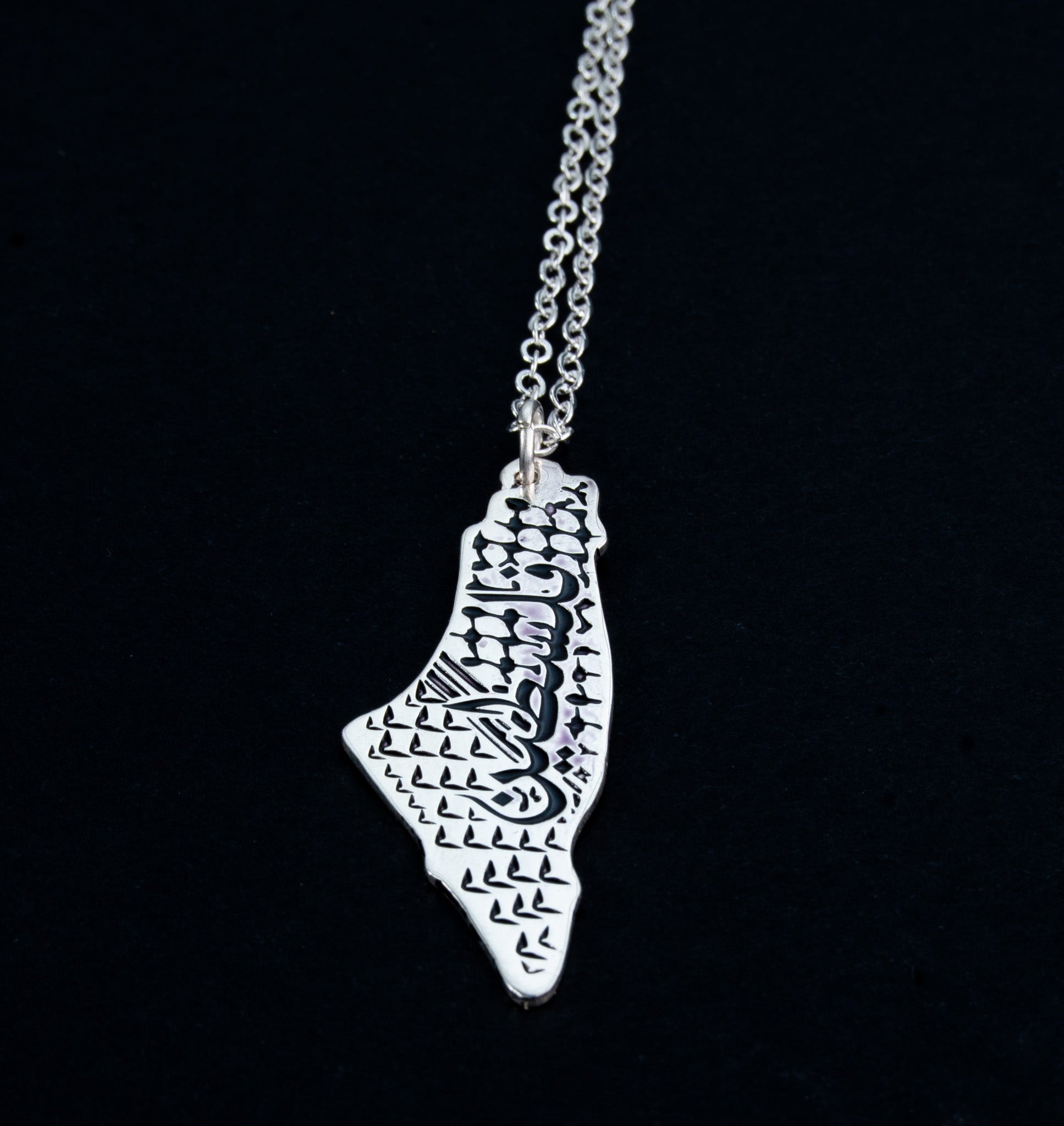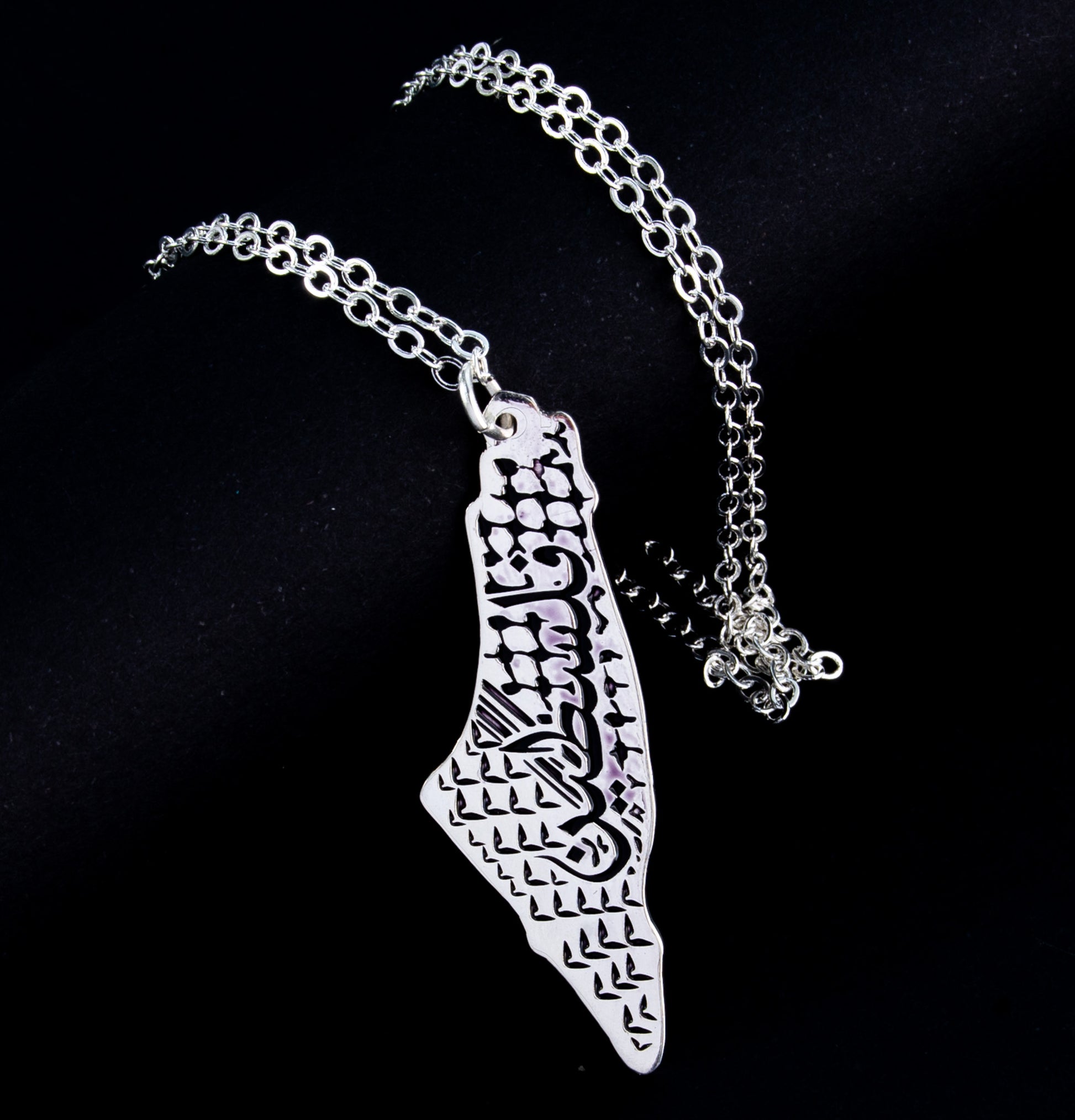 Silver-Plated Falasteen Map & Keffiyeh Necklace