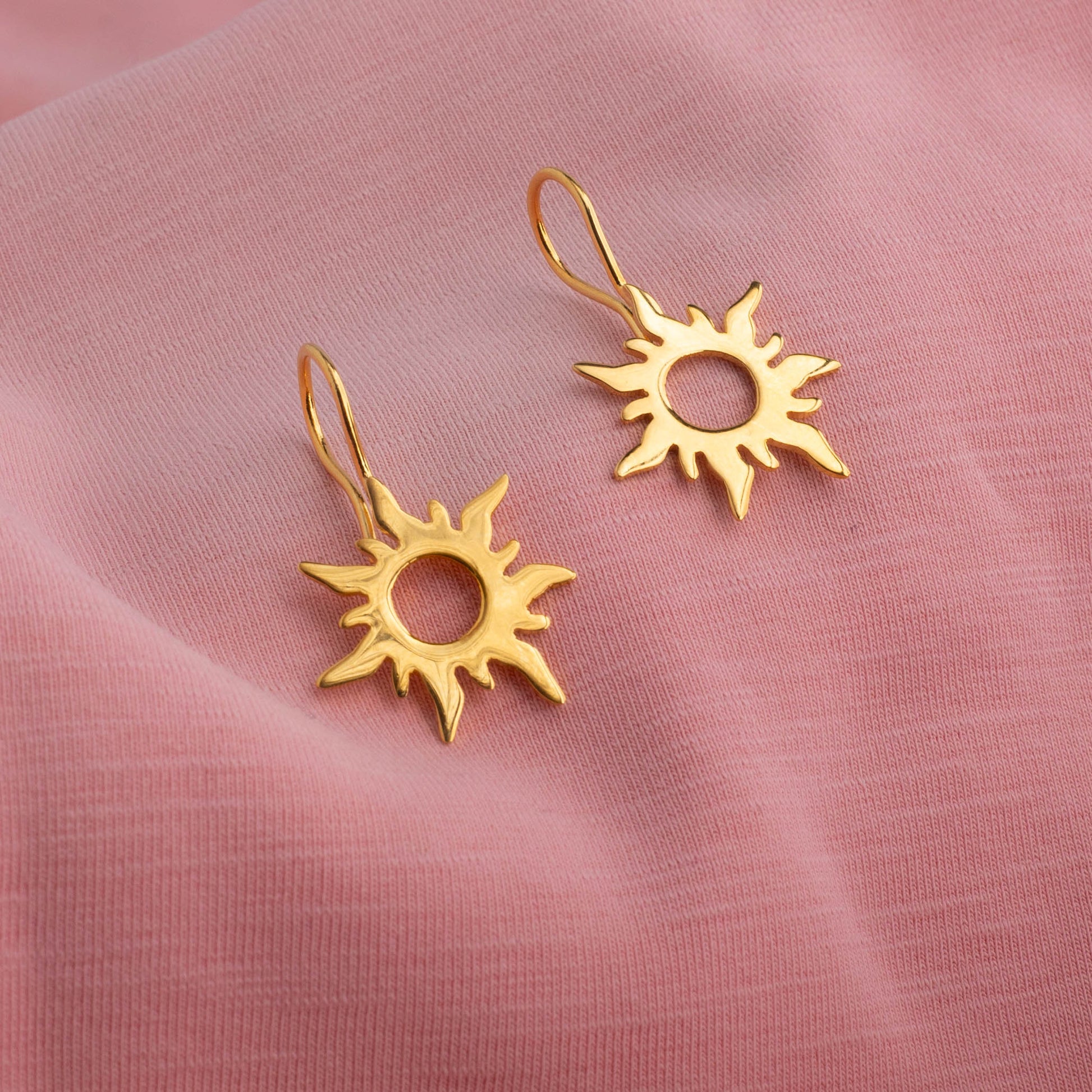 The double 24k gold-plated earring and necklace sun ray set is a luxurious and radiant jewelry collection that embodies elegance and contemporary style. This stunning set includes a pair of earrings and a matching necklace, each featuring a sun ray design that captures the beauty and warmth of the sun's rays.