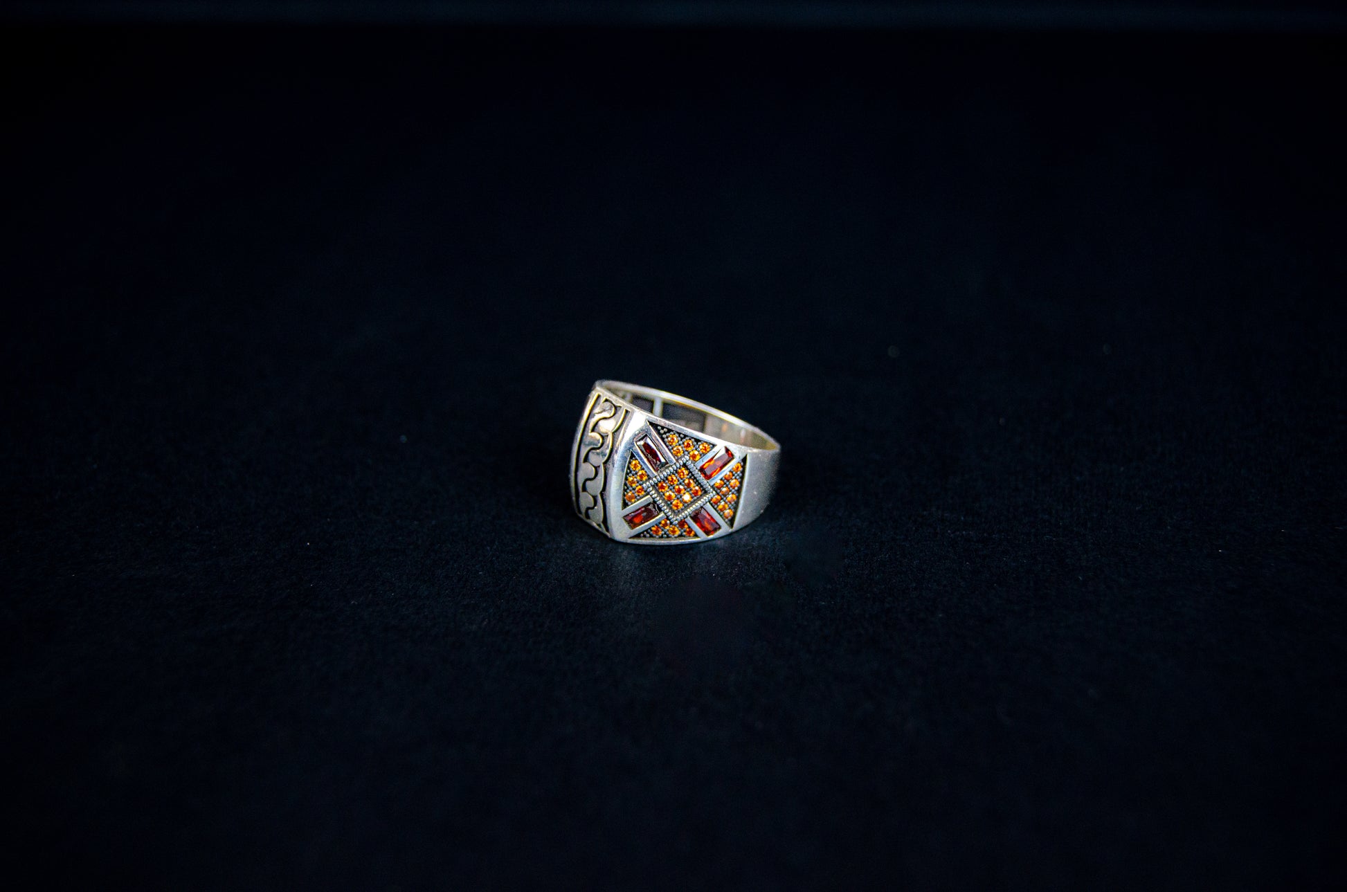 Indulge in luxury with our Turkish Silver Pattern Ring. Handcrafted with high grade Turkish silver, this ring exudes elegance. Adorned with delicate gems and an intriguing design, it's a true statement piece that will elevate any outfit. Experience the artistry and exclusivity in every detail.
